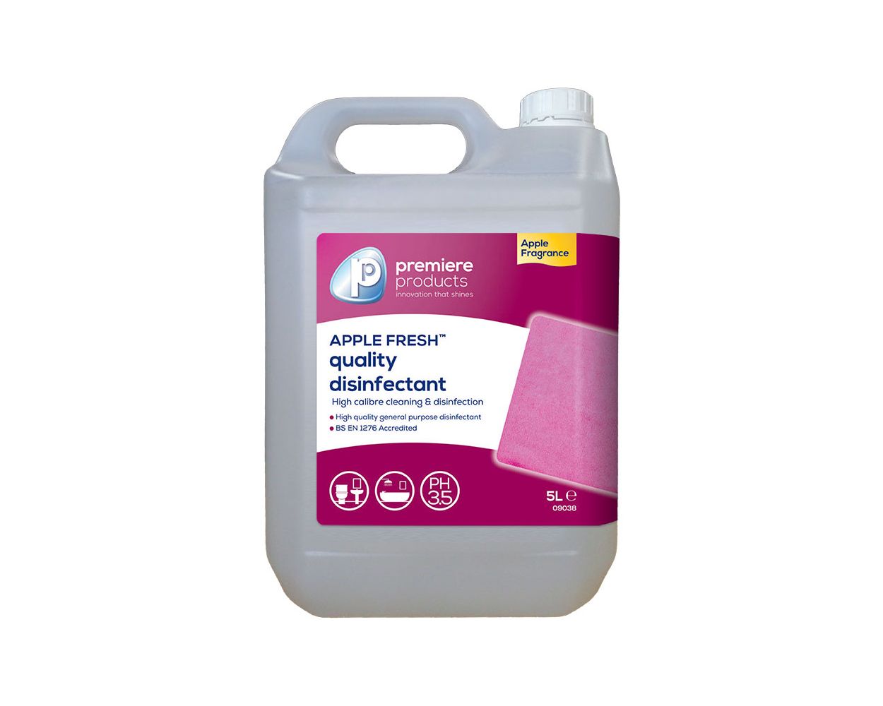 Apple Fresh is high quality anti-bacterial disinfectant with a fresh apple fragrance, for use on walls, floors, tiles and general fittings. Suitable for use in toilets, washrooms and all areas where a high standard of hygiene is paramount. Use for mopping, damp wiping, spray cleaning and deep cleaning applications on all hard surfaces and floors.