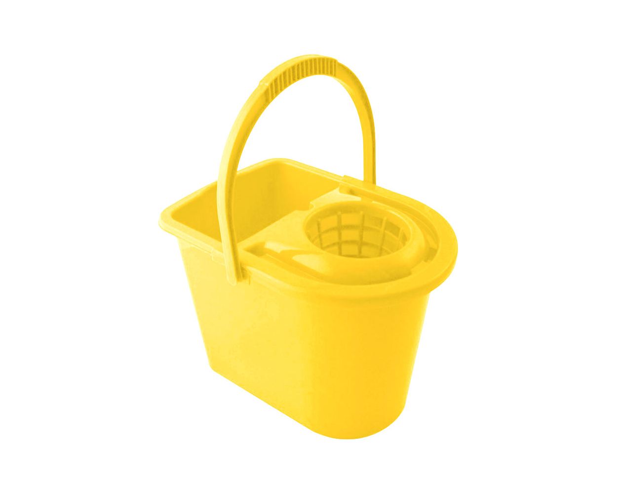 A sturdy polypropylene bucket with wringer to reduce spillage.