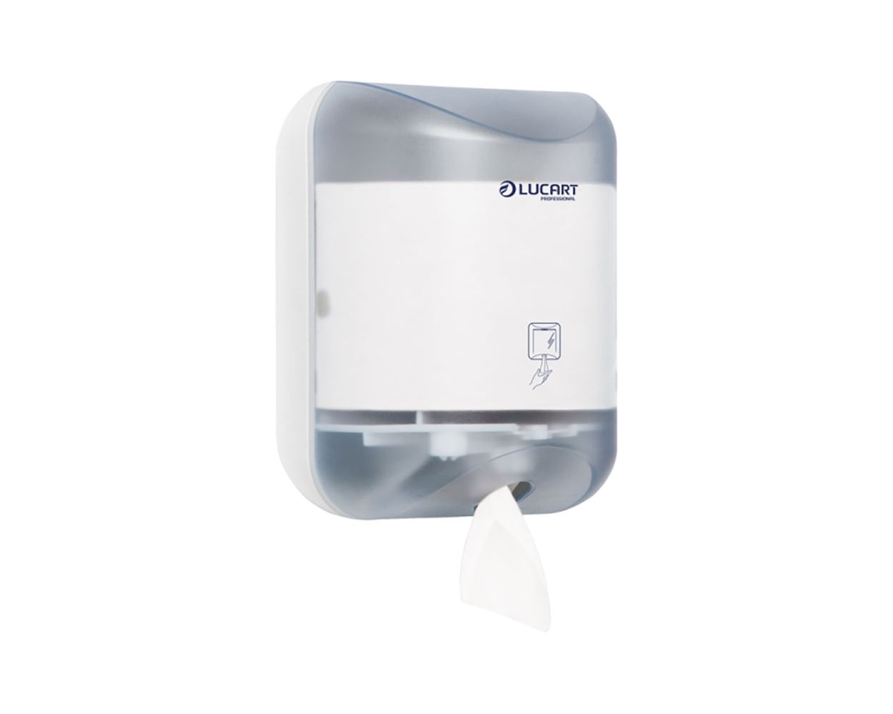 Introducing the L-One Mini Dispenser, a versatile solution designed for use with L-One Mini toilet paper. This dispenser is compatible with both pure tissue and EcoNatural Paper, offering flexibility and sustainability for your washroom needs.