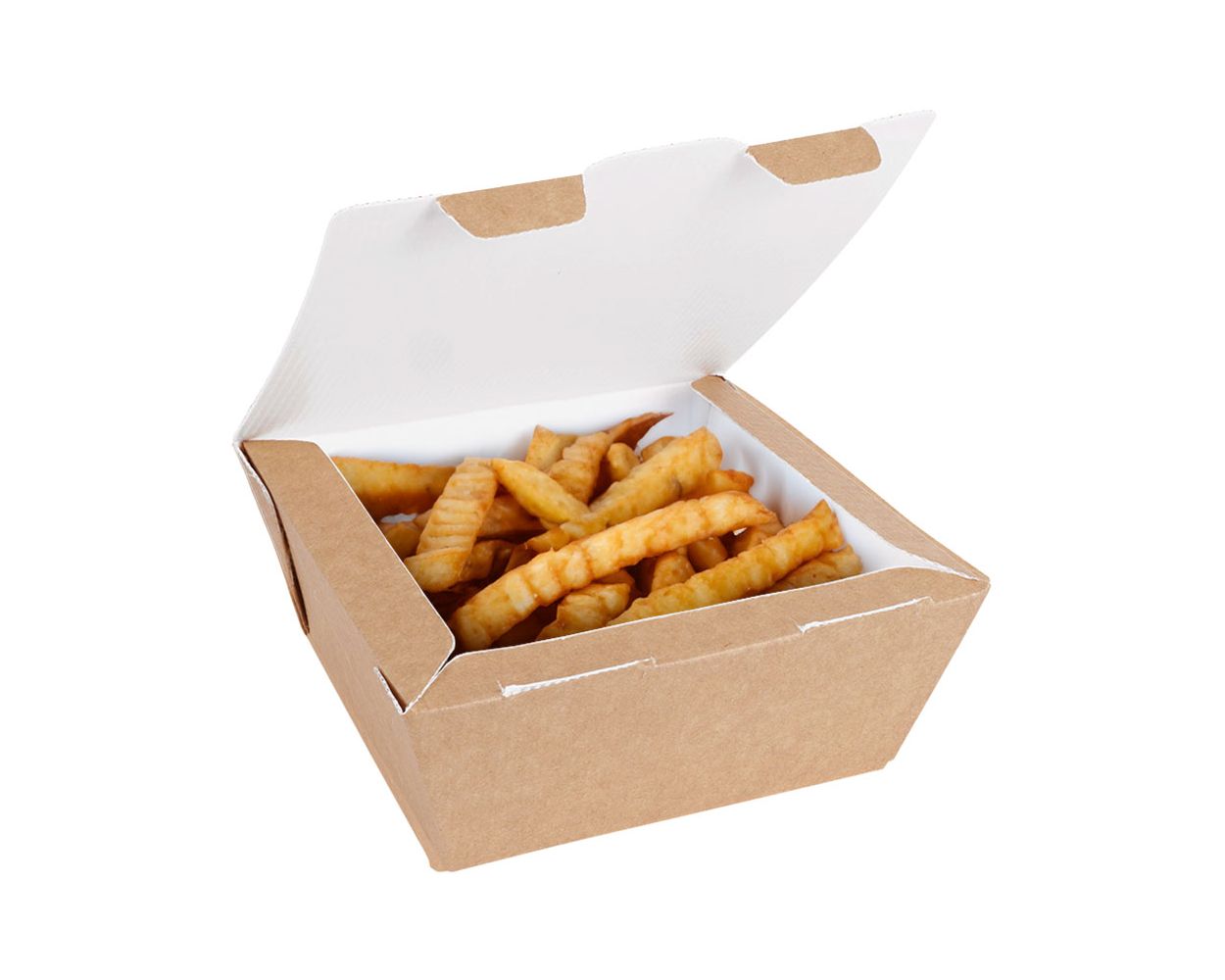 These small food to go boxes are made from corrugated card and have a greaseproof and leakproof PET lining, allowing you to serve antything from salads, to burgers, or even curries and noodle dishes.